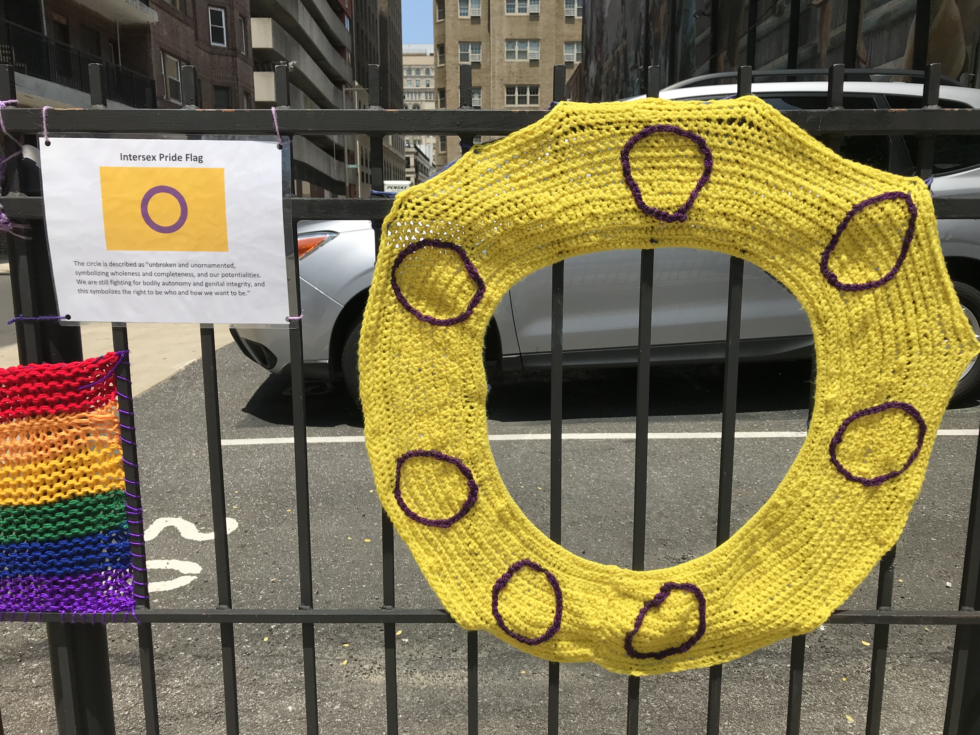 We yarn bombed The William Way LGBT Community Center, Mazzoni Health Center, John C. Anderson Apartments for LGBT seniors, Giovanni's Book Store, Tabu, The Parkway Corp parking lot fence, and various street poles! The public reaction was fantastic!